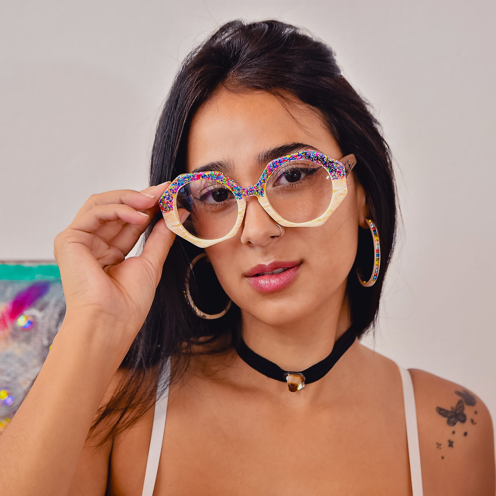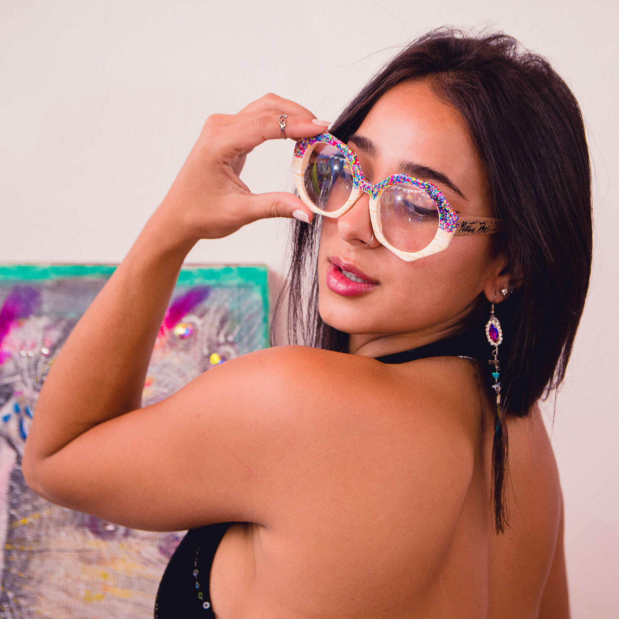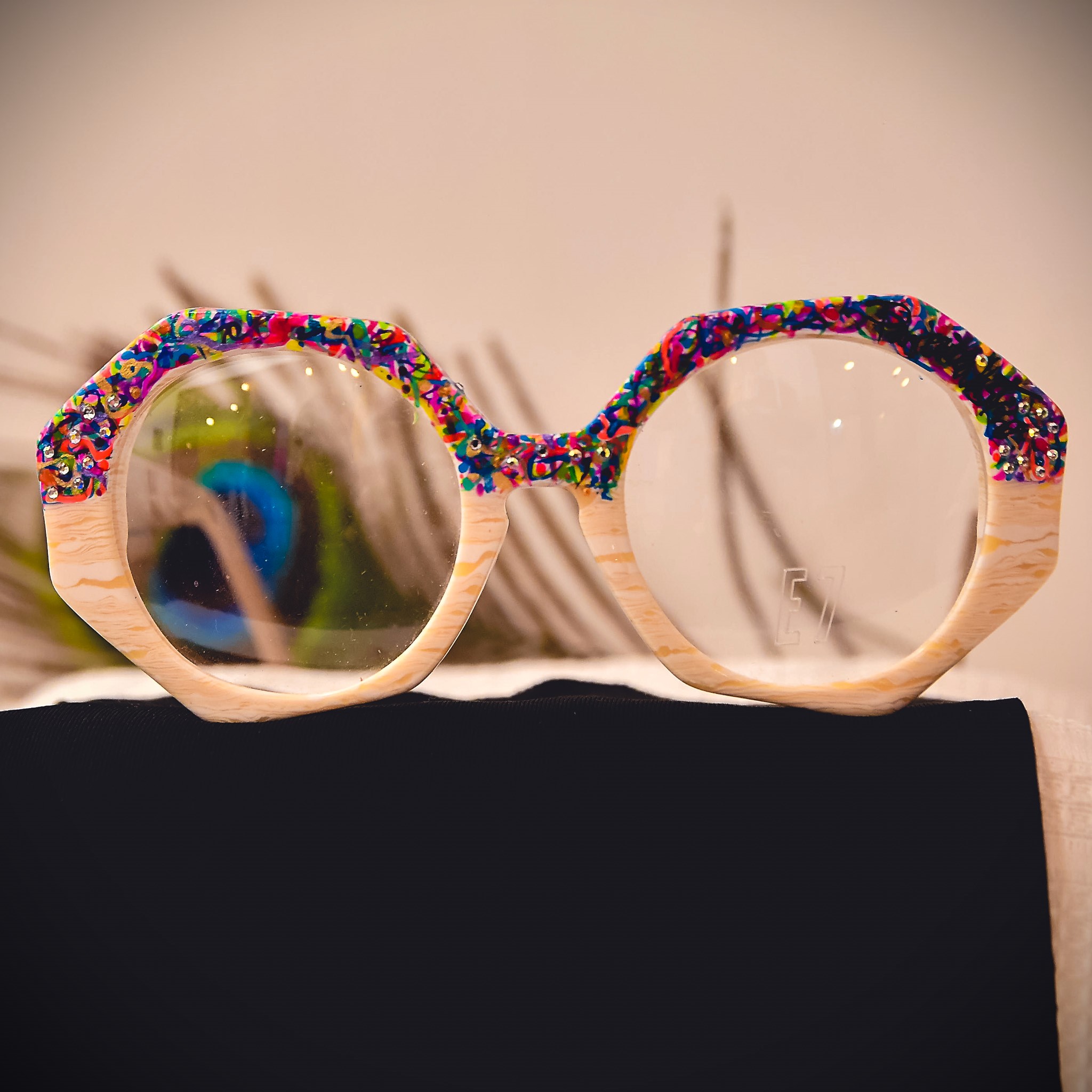 Pieza marfil, diseño color power con cristales.