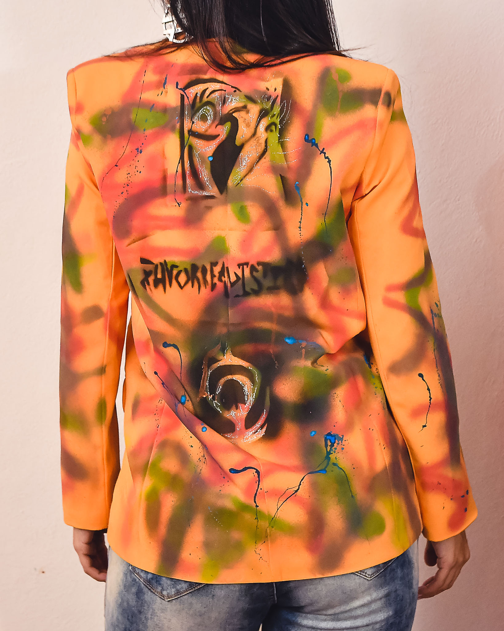Blazer naranja diseño pavo real.