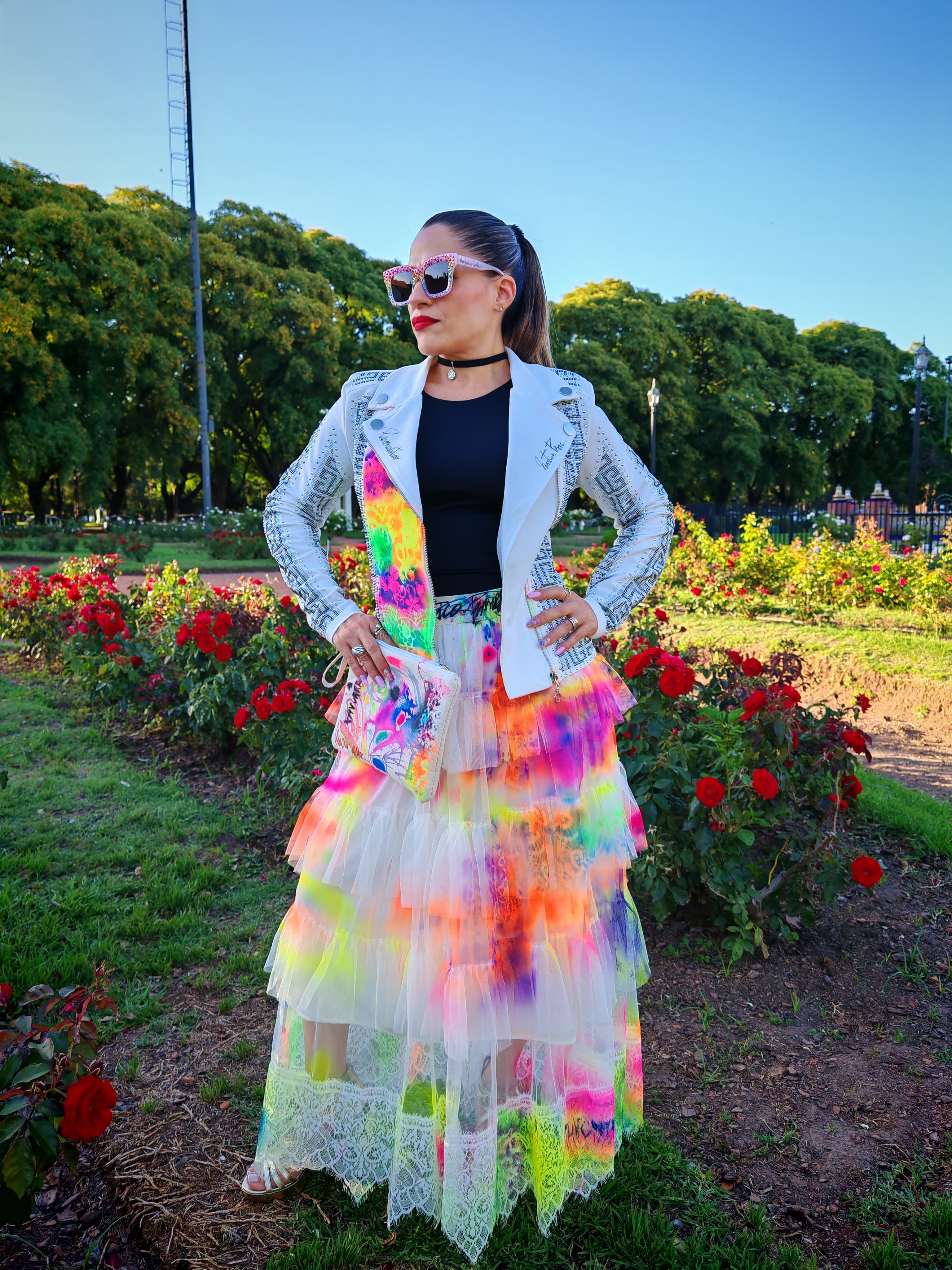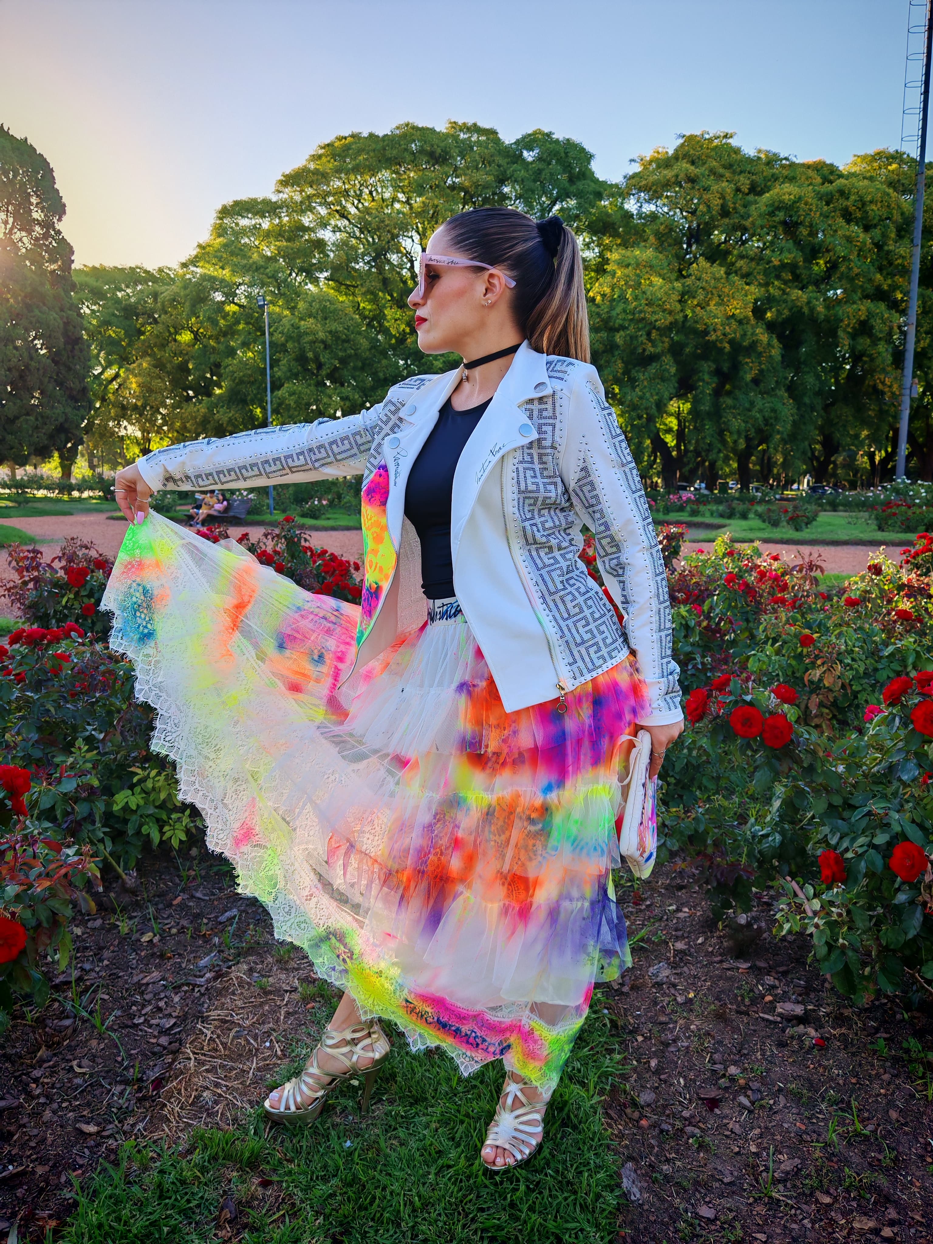 Pollera tull grafitti neón